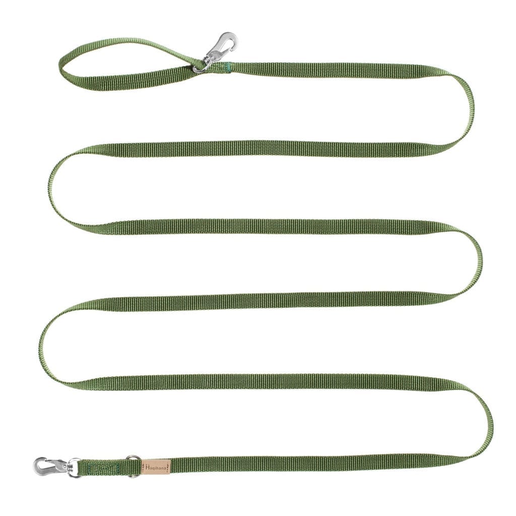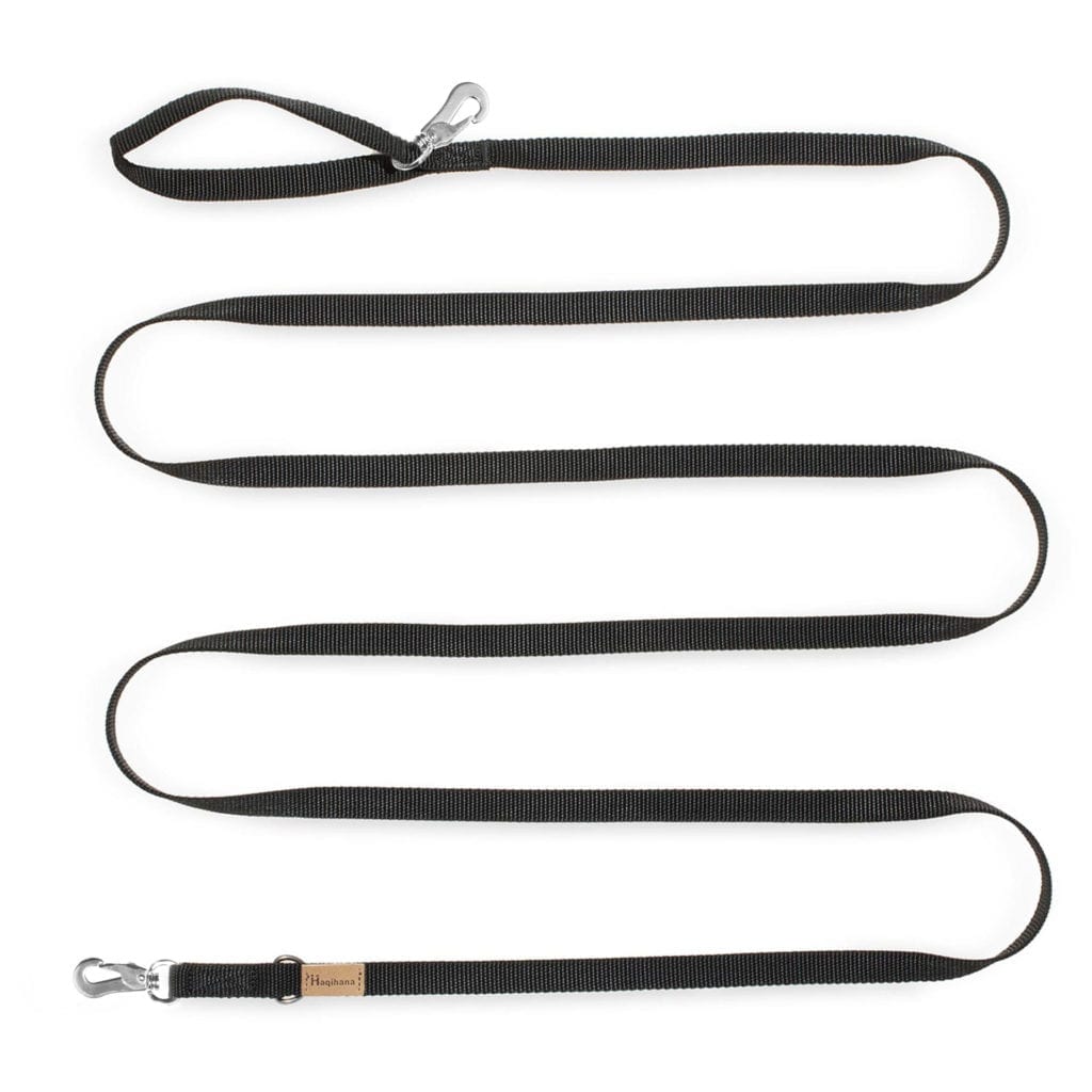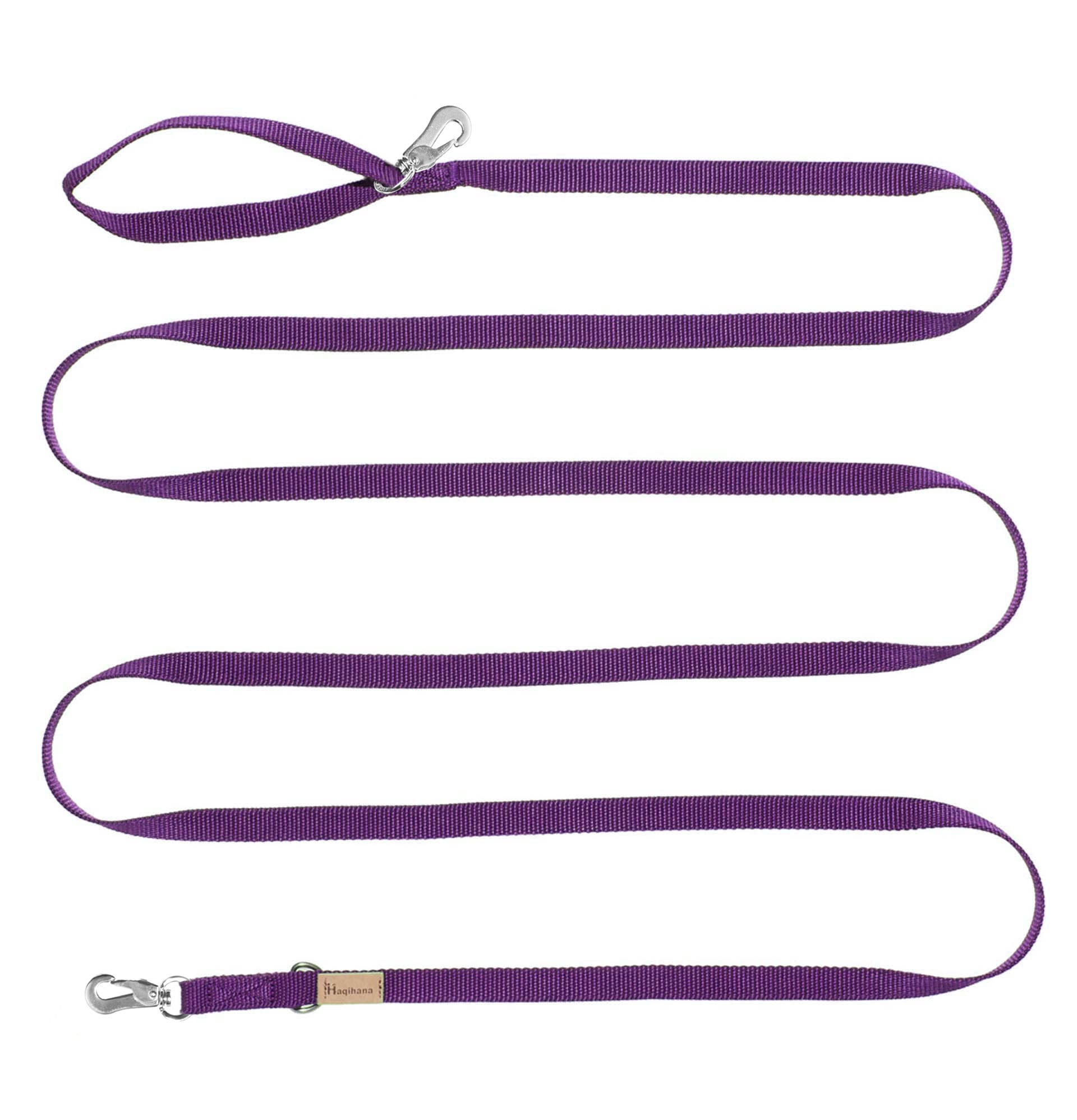 The lighter the leash the less constricted the dog will feel in the first place. Therefore it will allow puppies to adjust to being on leash much easier: The leash is visually behind the dog, making pulling and leash biting hardly an issue anymore. The leash does not get caught underfoot because it attaches to the Haqihana harness on the back nor does it get tangled when the dog or puppy moves from side to side to allow sniffing because the leash attachment clips are swivel mounted. The leashes also can easily be opened to the full 3m length to allow ample exploring and sniffing.