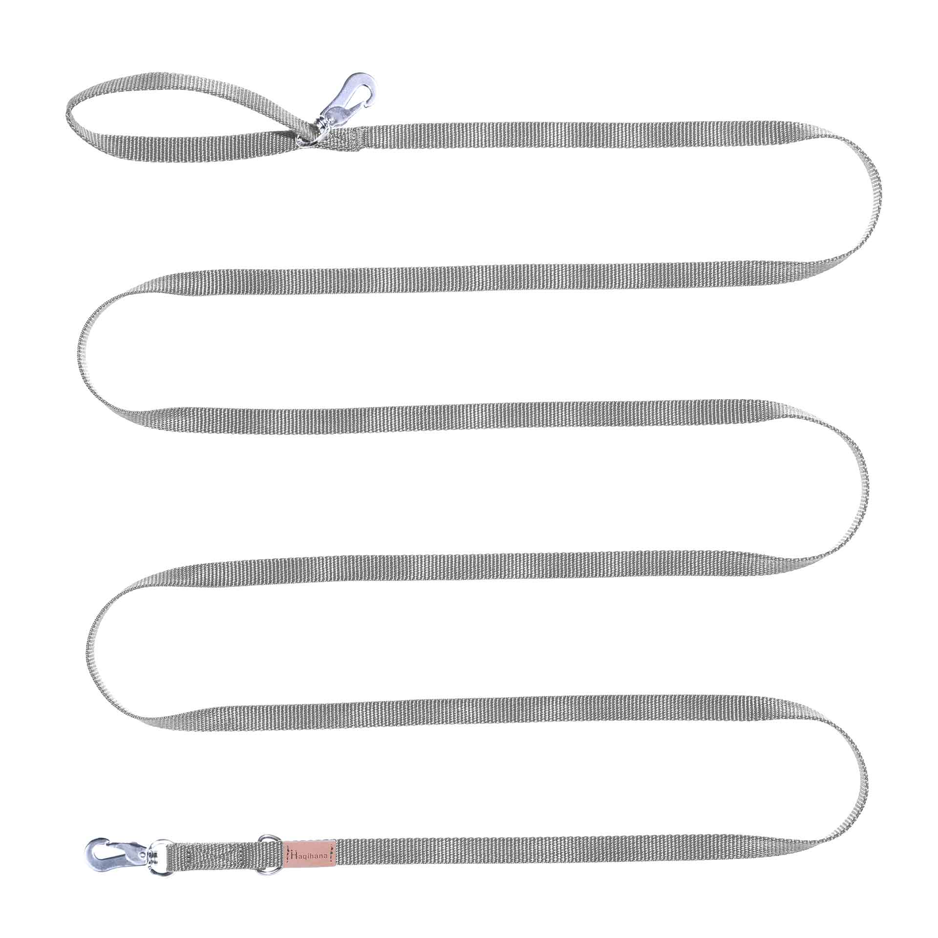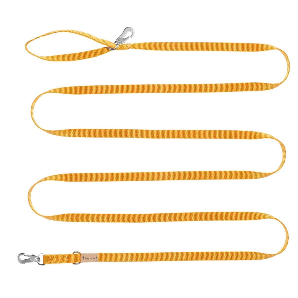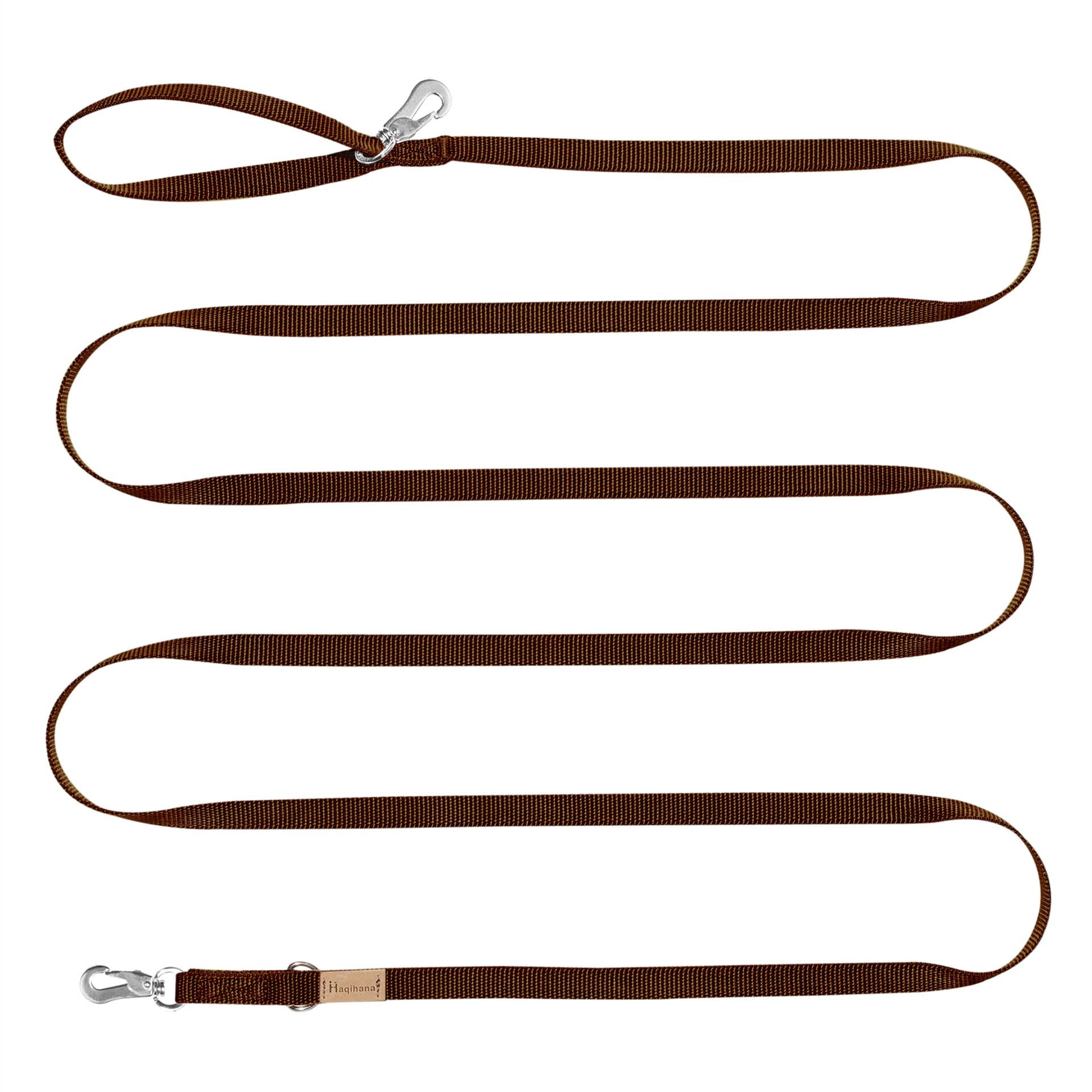 The lighter the leash the less constricted the dog will feel in the first place. Therefore it will allow puppies to adjust to being on leash much easier: The leash is visually behind the dog, making pulling and leash biting hardly an issue anymore. The leash does not get caught underfoot because it attaches to the Haqihana harness on the back nor does it get tangled when the dog or puppy moves from side to side to allow sniffing because the leash attachment clips are swivel mounted. The leashes also can easily be opened to the full 3m length to allow ample exploring and sniffing.